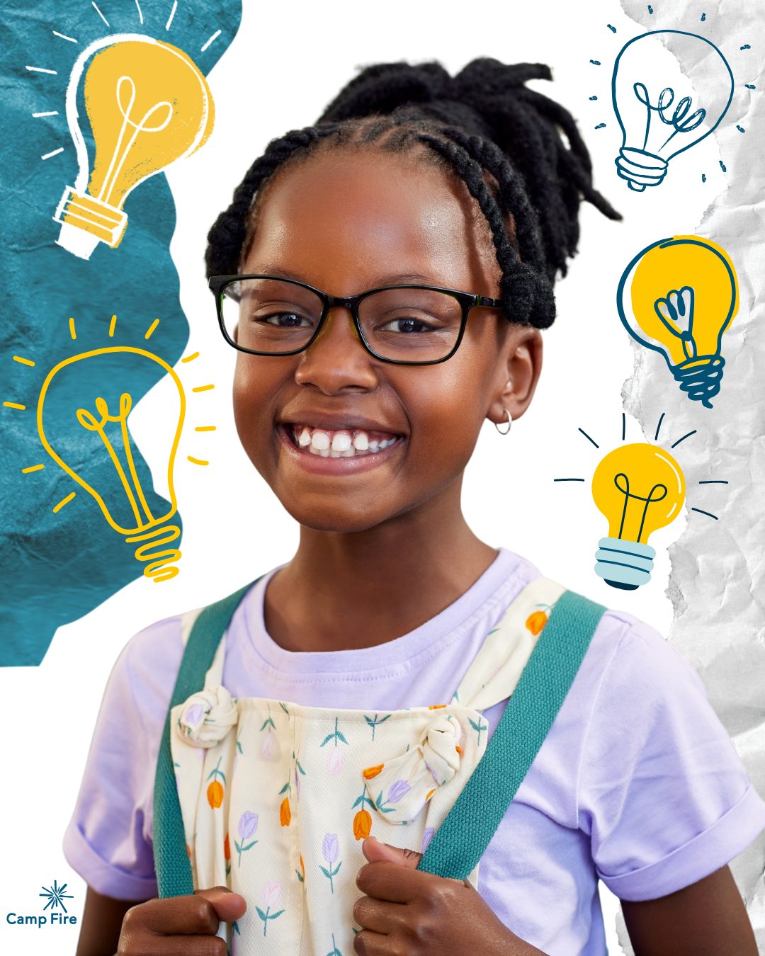 Girl featured in graphic promoting bright ideas and afterschool programs