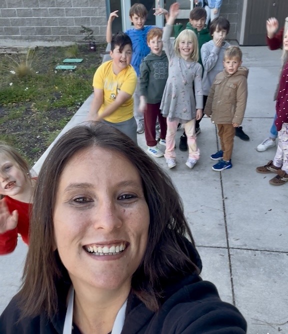 Jen Paynter poses with Camp Fire Afterschool kids.